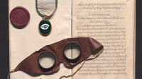 In dem Kästchen befanden sich Medaillons, Kokarden, Schurze, Brillen, Zangen, ein Vergrößerungsglas und das aus Elfenbein gefertigte Modell eines aufklappbaren Auges. Außerdem die genannte Handschrift und weitere Texte.